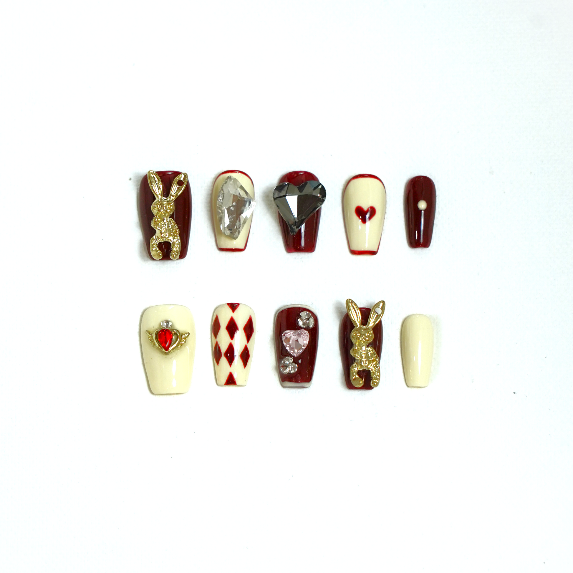 Step into a world of fantasy and elegance with our "Alice in Wonderland" press-on nails. Inspired by the whimsical charm and enchanting aesthetics of the classic tale, these nails are perfect for adding a touch of magic to your everyday look.