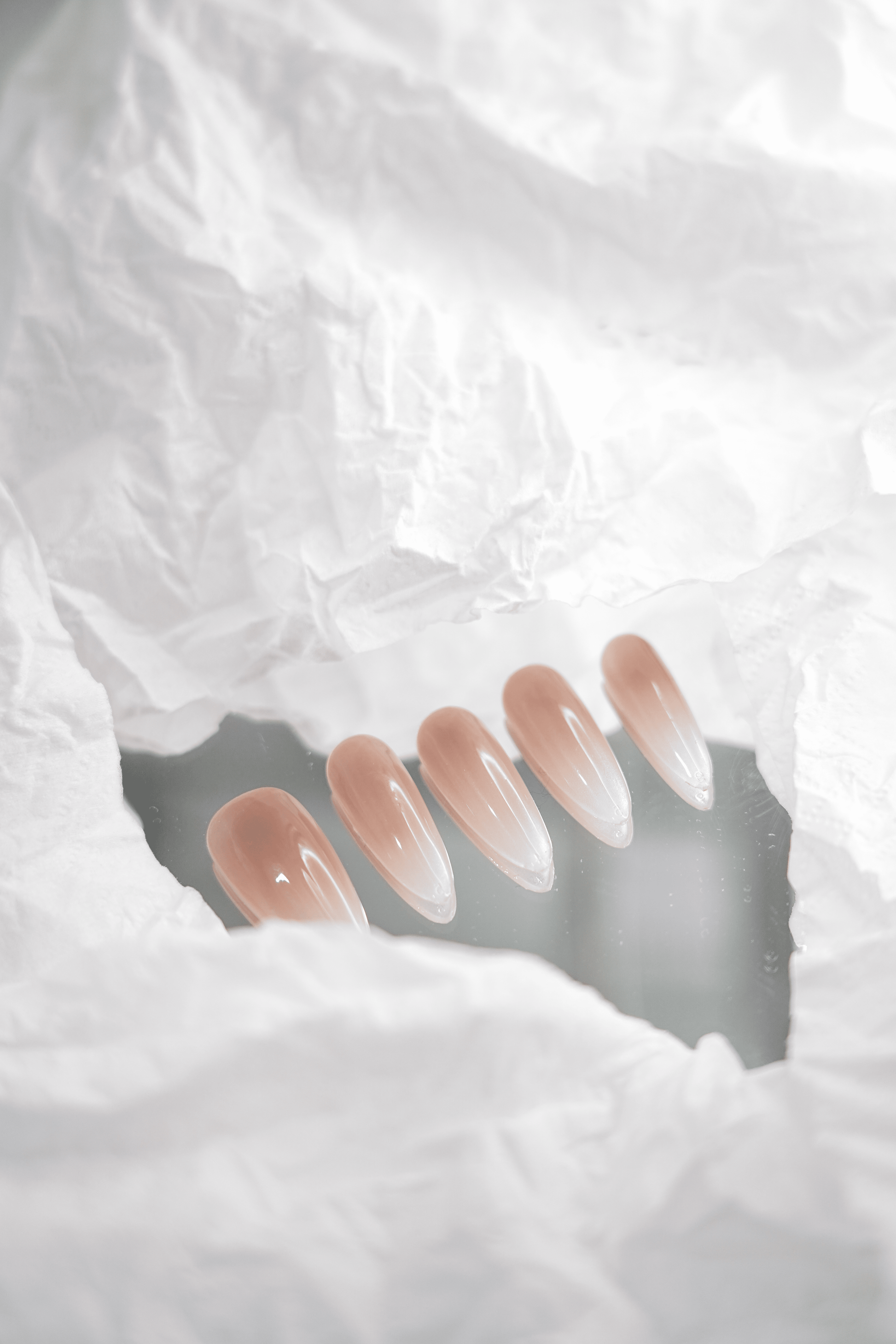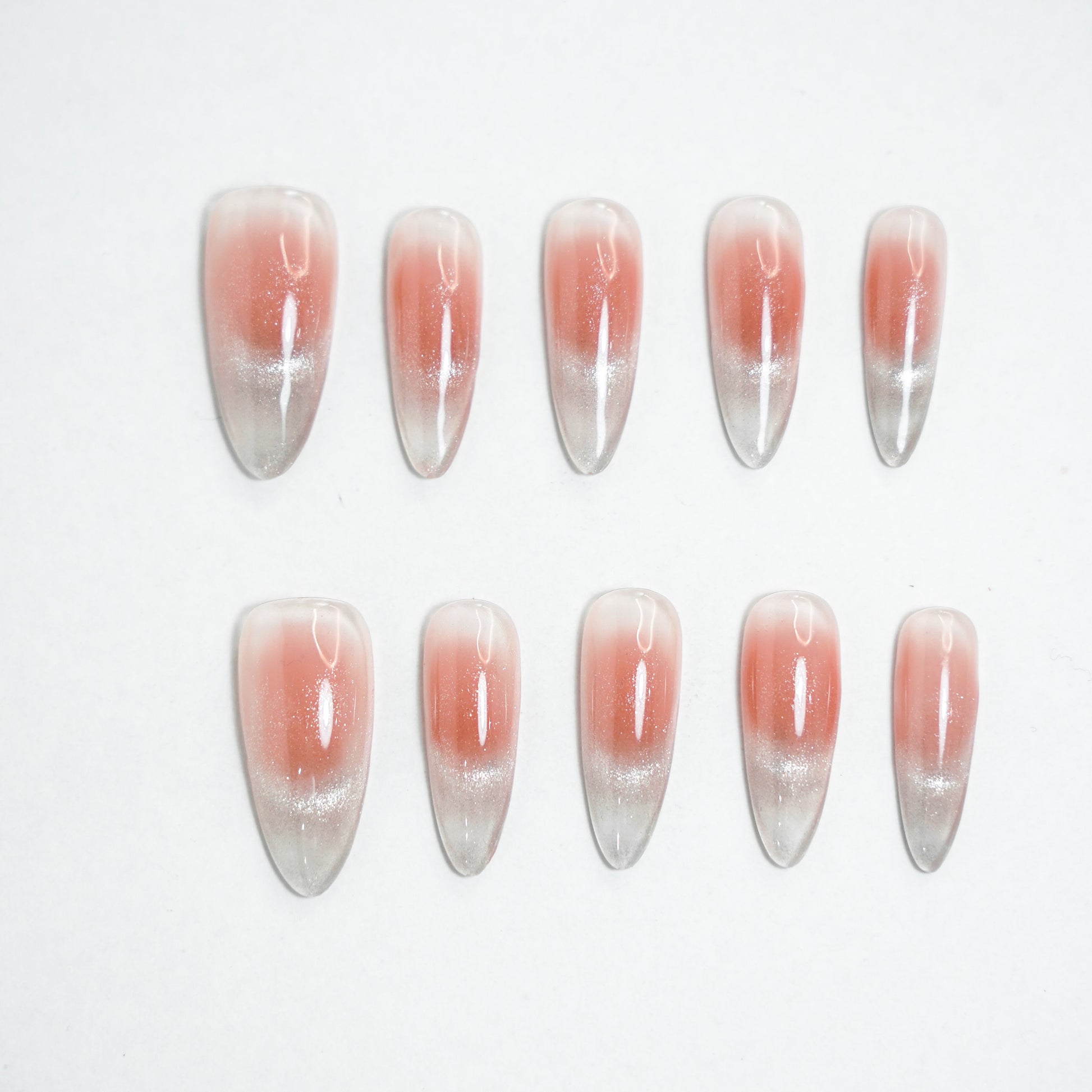 - Gentle Gradient: Each nail showcases a beautiful blend of blush pink fading into a soft silver, creating a dreamy and ethereal appearance.