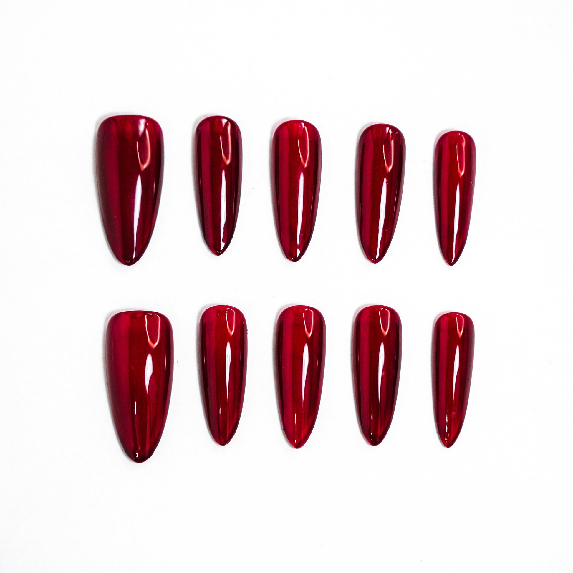 - Bold Red Hue: Each nail showcases a rich, glossy crimson red that radiates intensity and elegance, making them perfect for a night out or a special occasion.