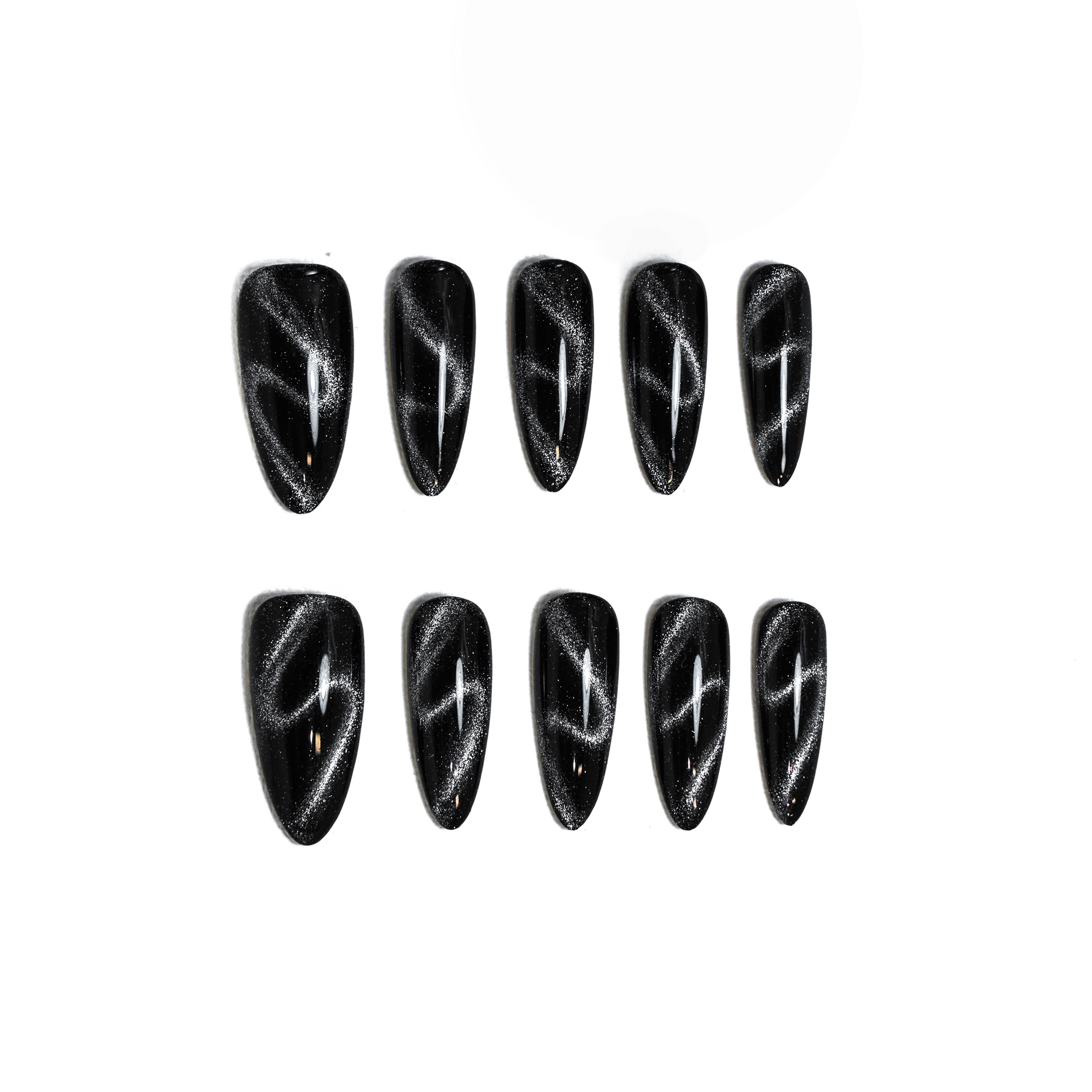 - Sleek Onyx Finish: Each nail showcases a rich, deep black color with a subtle, smoky pattern, reminiscent of polished onyx stones.