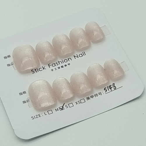 Indulge in the subtle elegance of our "Rose Champagne" press-on nails. These nails feature a soft, shimmering design that brings a touch of sophistication and luxury to your fingertips.