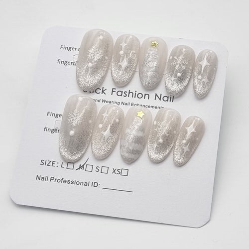 Celebrate the holiday season with the "Snow December" press-on nails. Perfect for adding a touch of winter magic to your nails, these nails will make your holiday celebrations even more special and stylish.