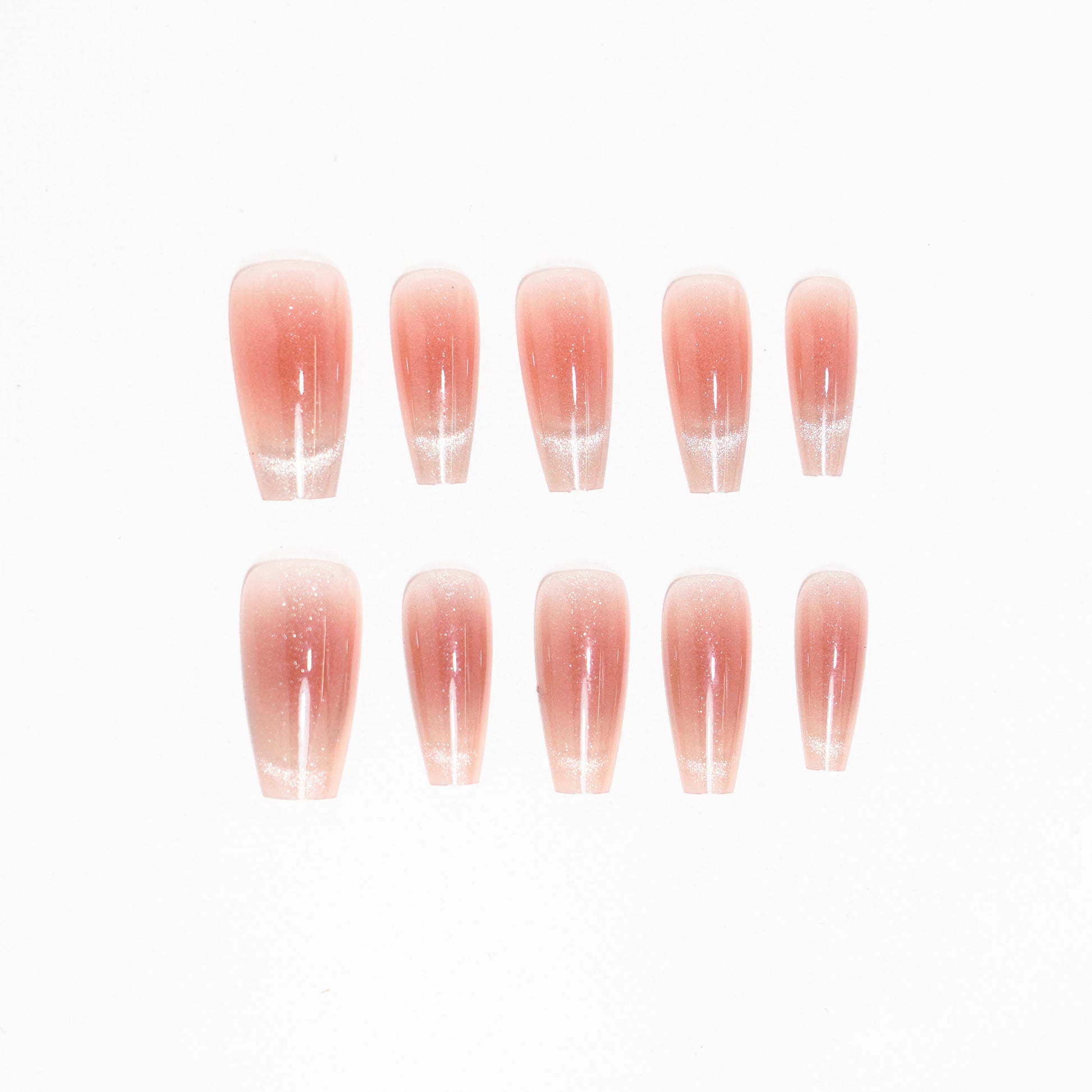 - Gradient Beauty: Each nail showcases a beautiful gradient from soft pink to shimmering white, mimicking the breathtaking colors of a sunset.